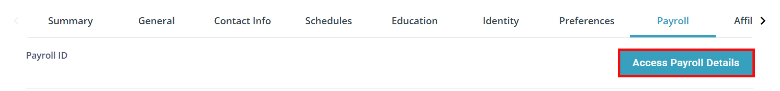 Once the Employee payroll information has been entered, you can access this information by clicking the Access Payroll Details button in the right hand corner.