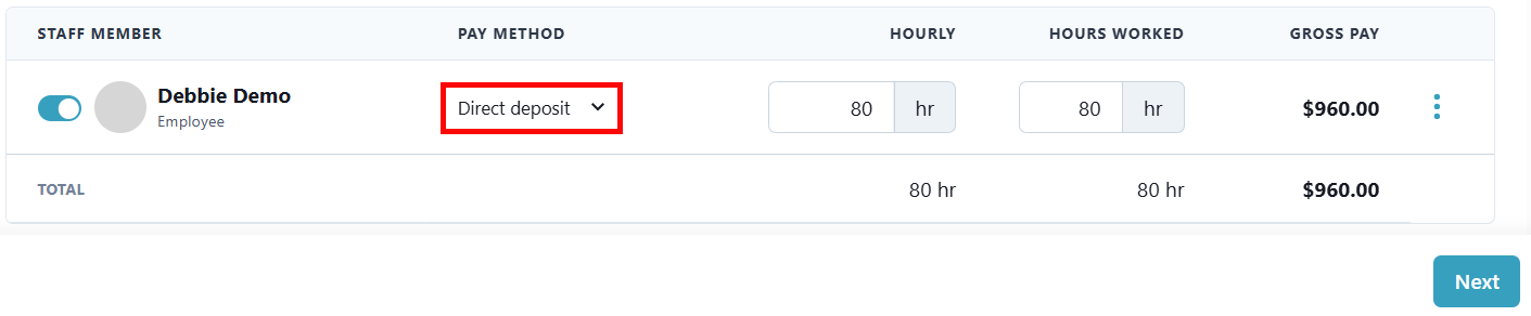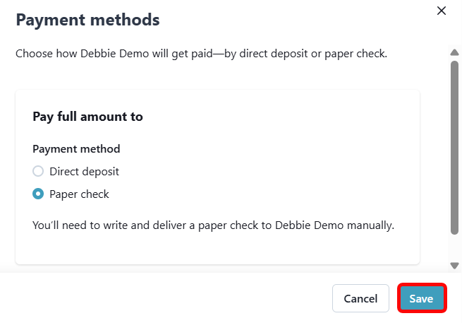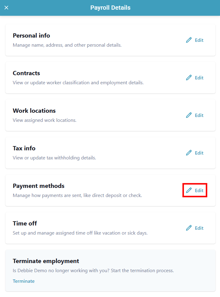 You can switch between paying a worker by paper check (or through a digital payment service such as Zelle or PayPal) or via direct deposit. There are 2 ways to make this change: