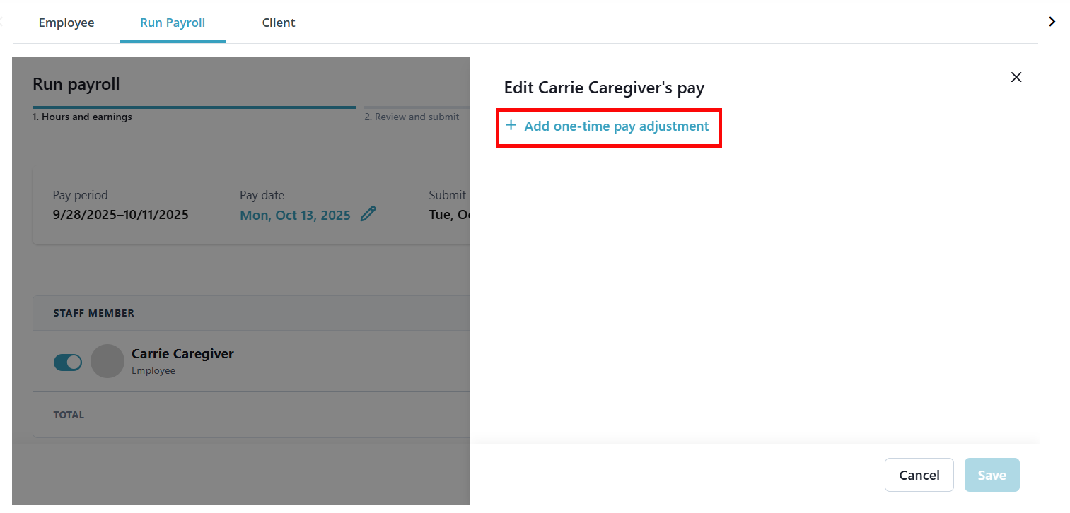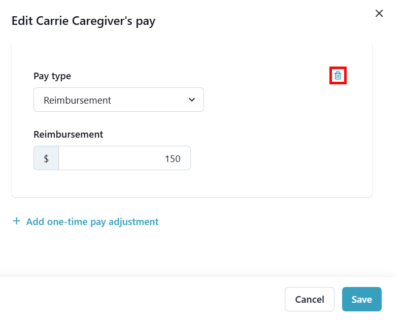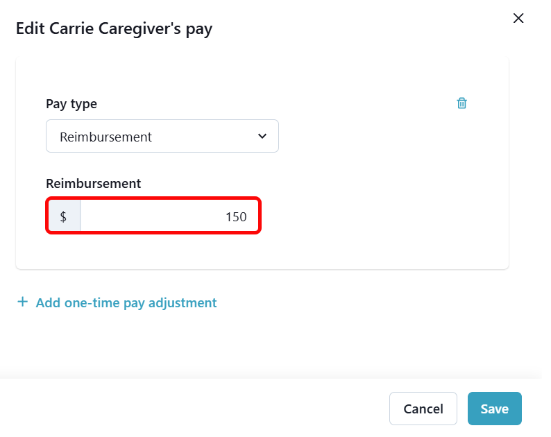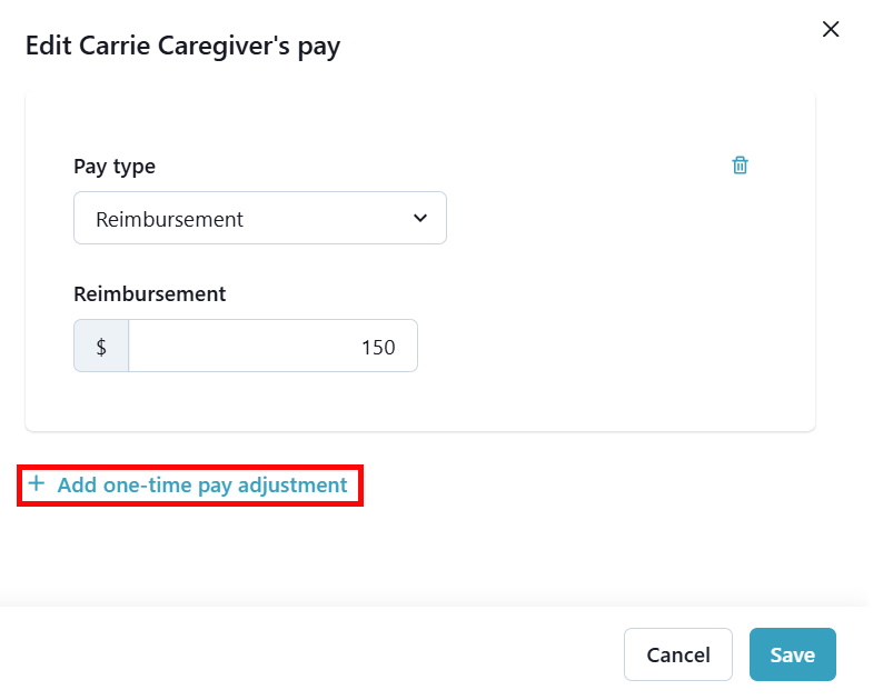 To add another pay adjustment, click + Add one-time pay adjustment again.