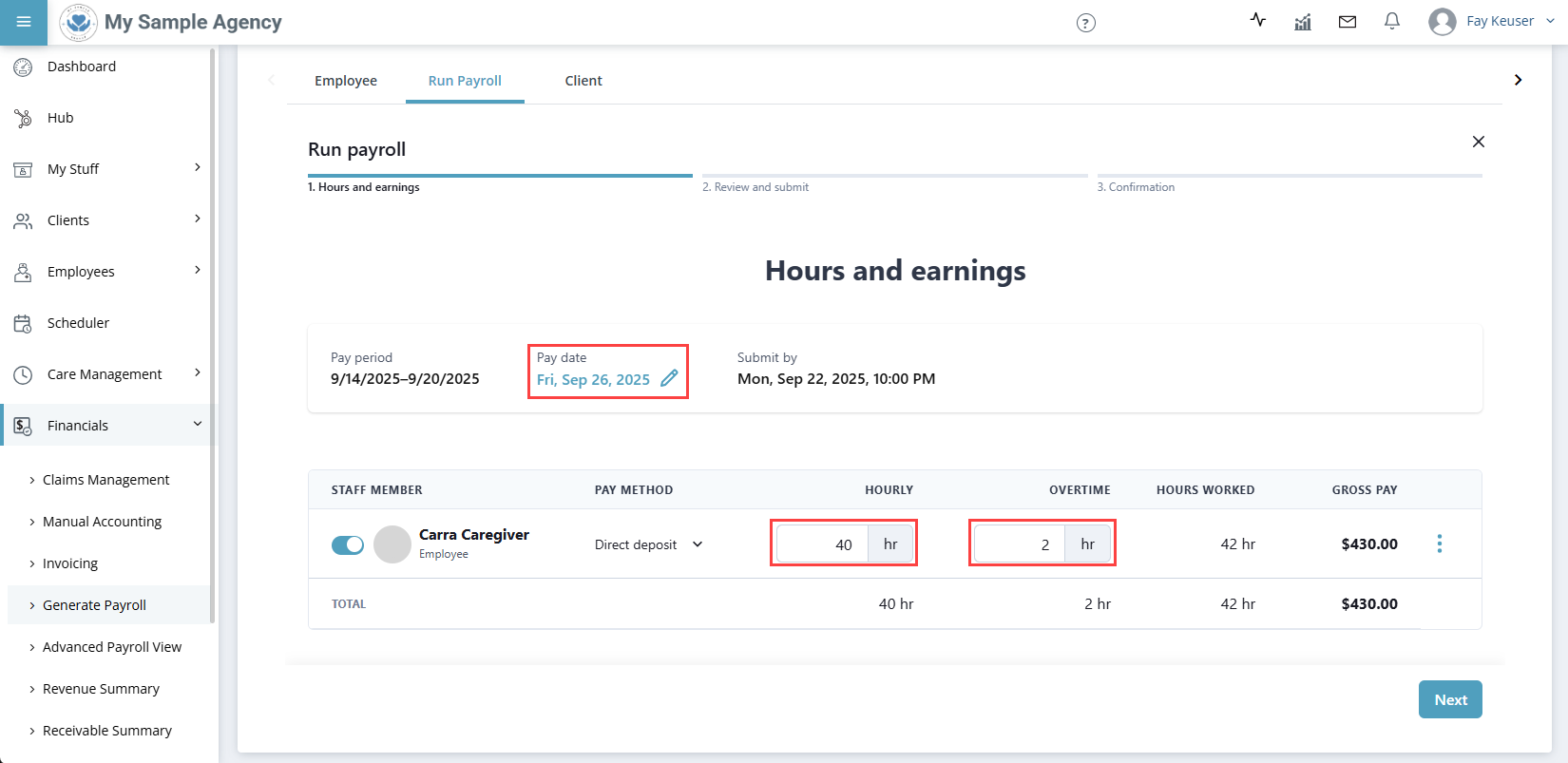 Pay Date: Select the pencil icon to adjust the payroll date.