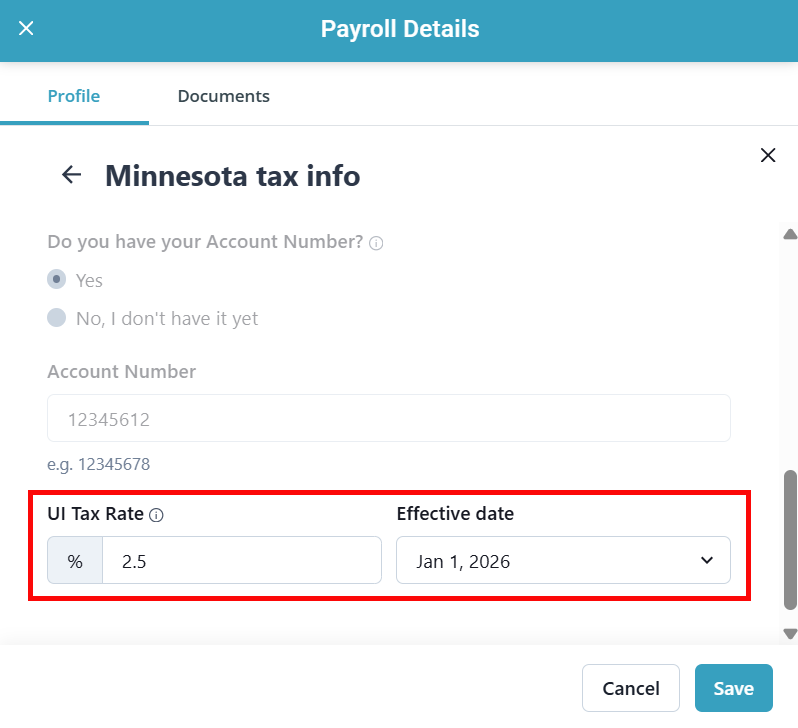 Enter the new UI Tax Rate and select the future Effective date (Typically January 1).
