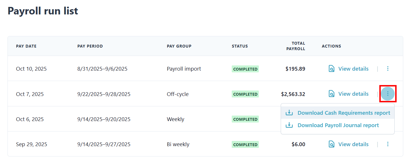 This report provides you with a detailed breakdown of an individual pay run, including what cash amounts are leaving your company bank account and where they are going. This report is useful for managing your company's cash flow.