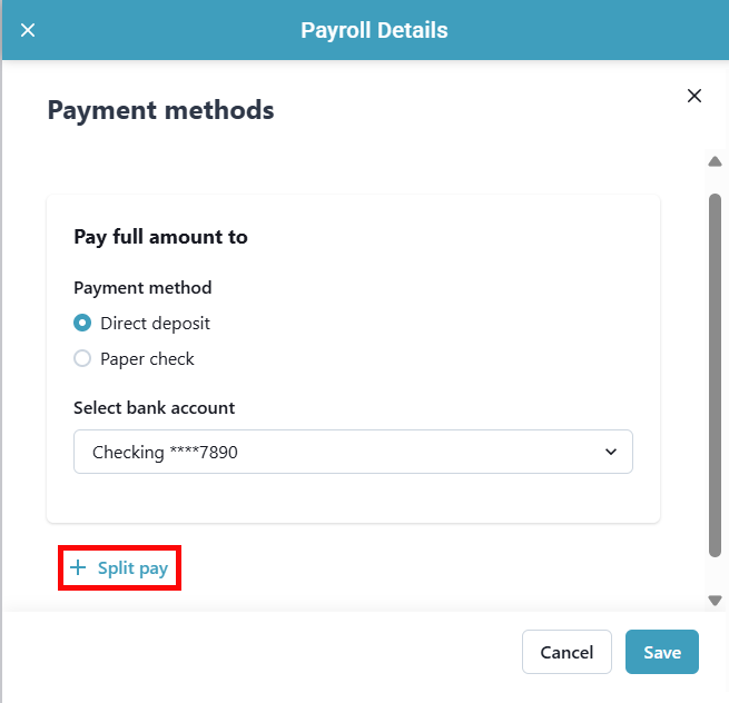 3. The Payroll Details panel opens. Find the Payment methods section and click Edit.
