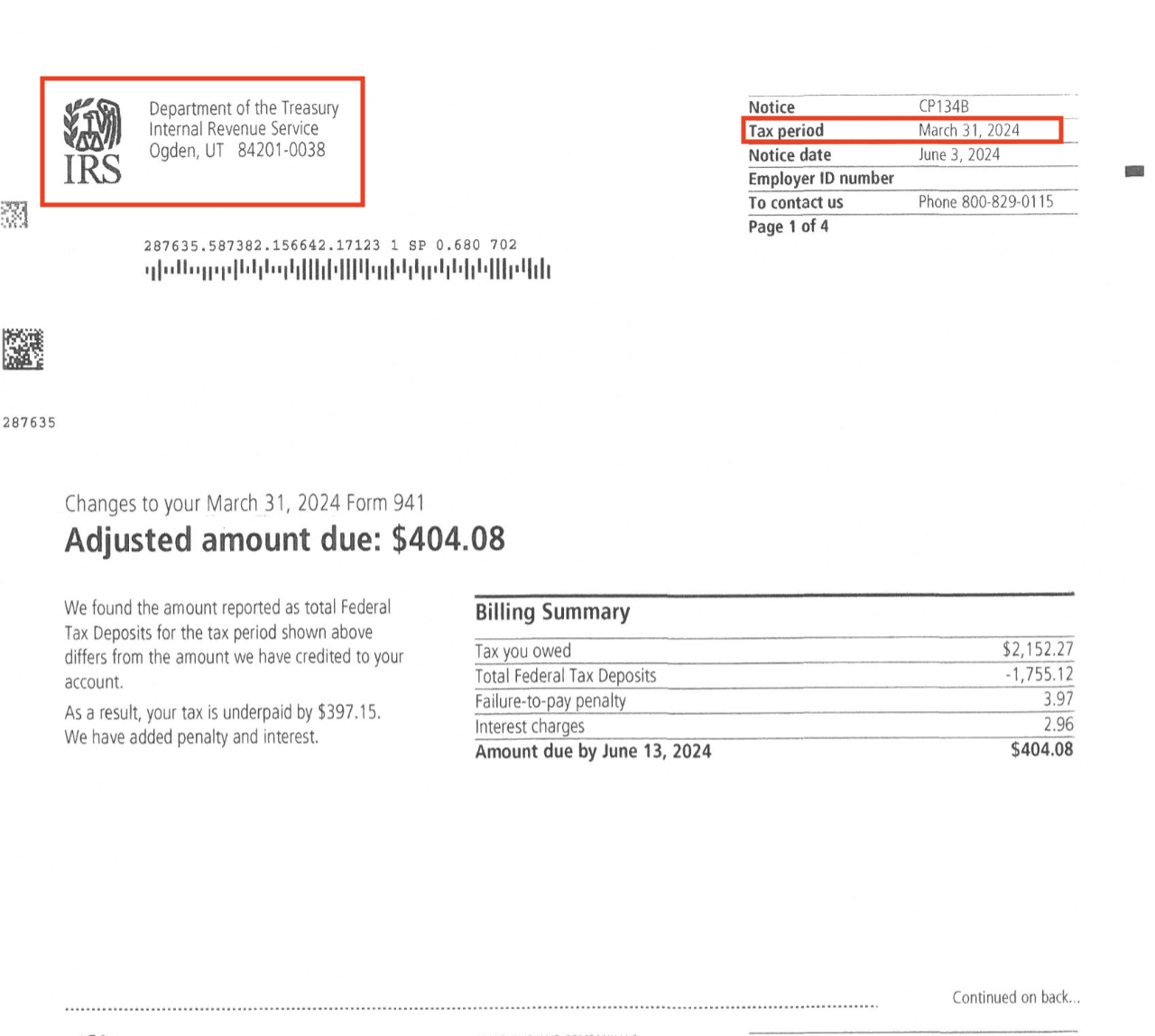 Missing filing: If a filing is not received for a tax period, various agencies may issue a notice displaying an estimate of the wages and taxes due. In order to resolve this, the filing first needs completed in order to determine the balance that is due on the account.