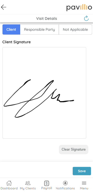 If the Client is not available, tap Not Applicable above the Client Signature field.