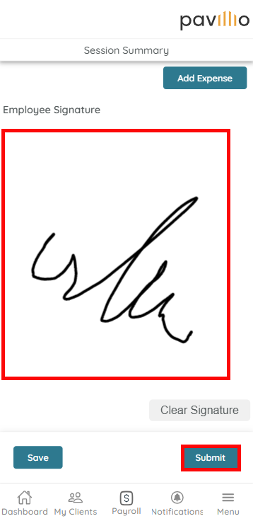 After entering information for all Clients, sign your name in the Employee Signature field and tap Submit.