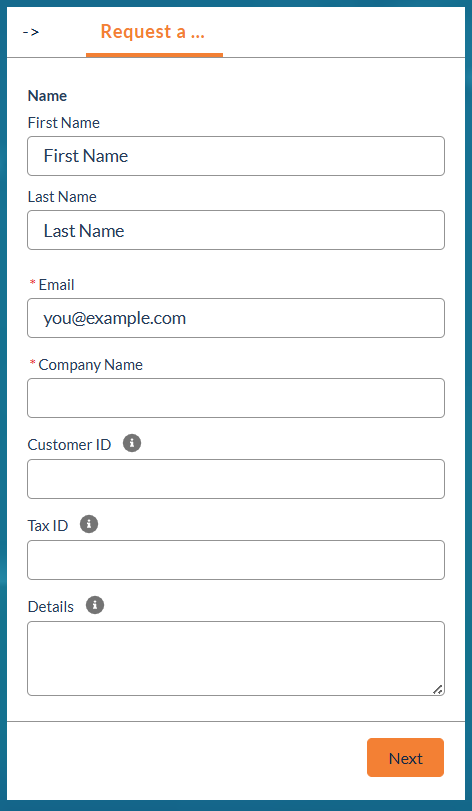 Fill out the fields in the form that opens. Ignore the Customer ID field. Click Next.